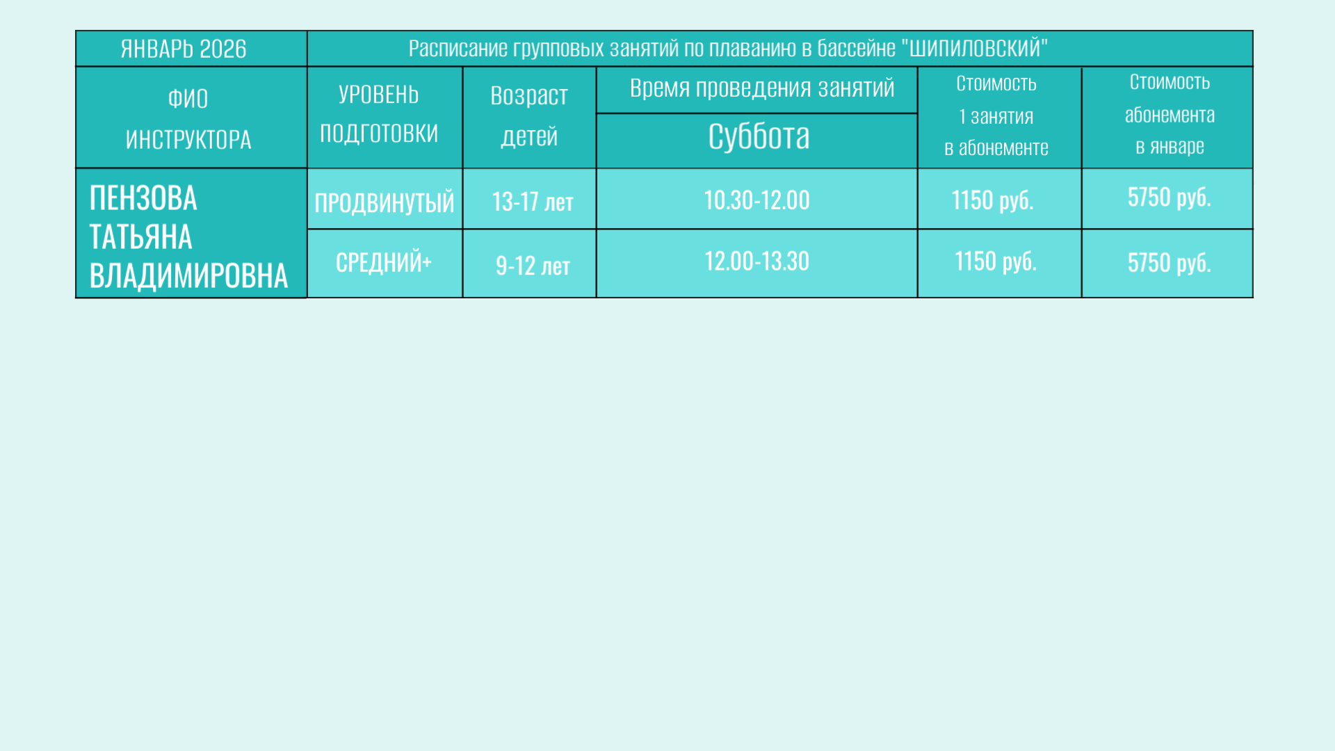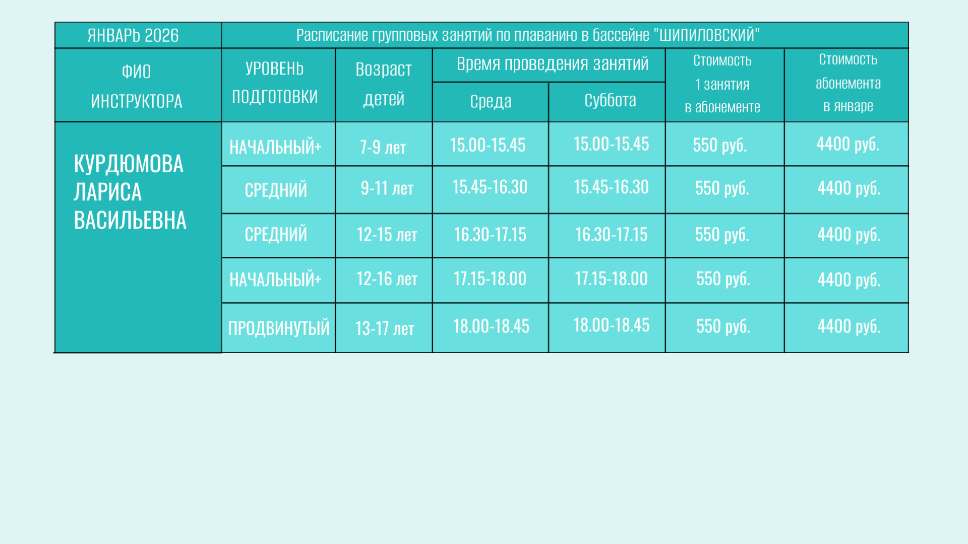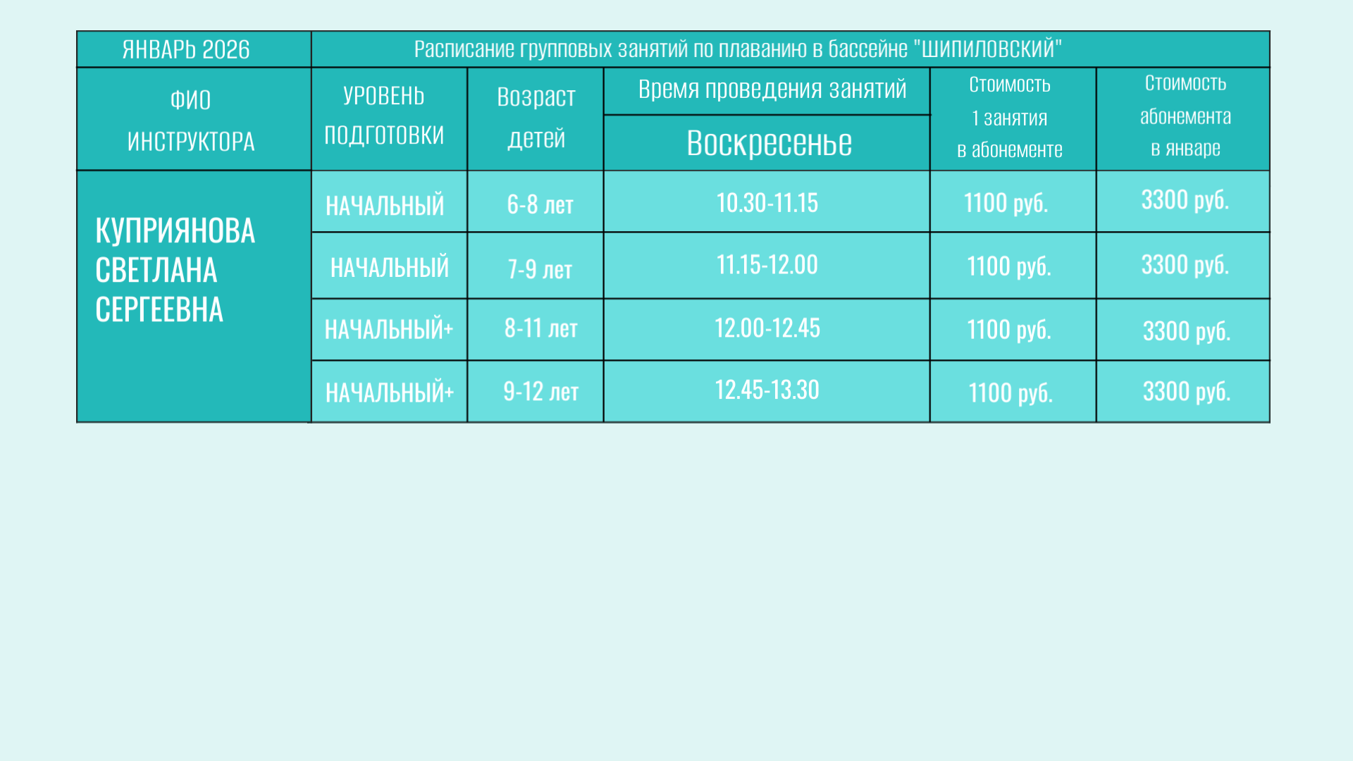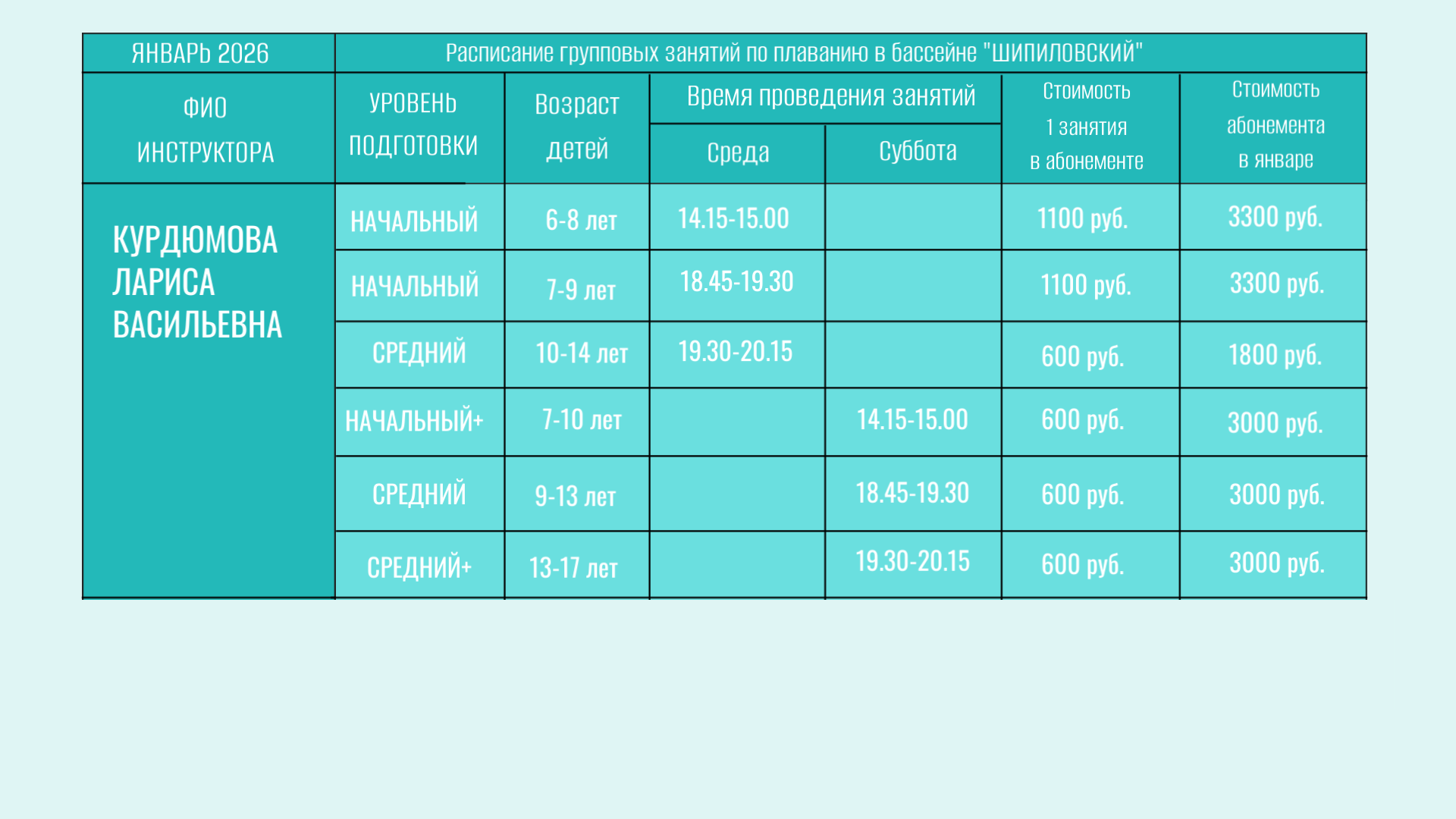 В бассейне проводятся групповые занятия для детей от 6 лет.