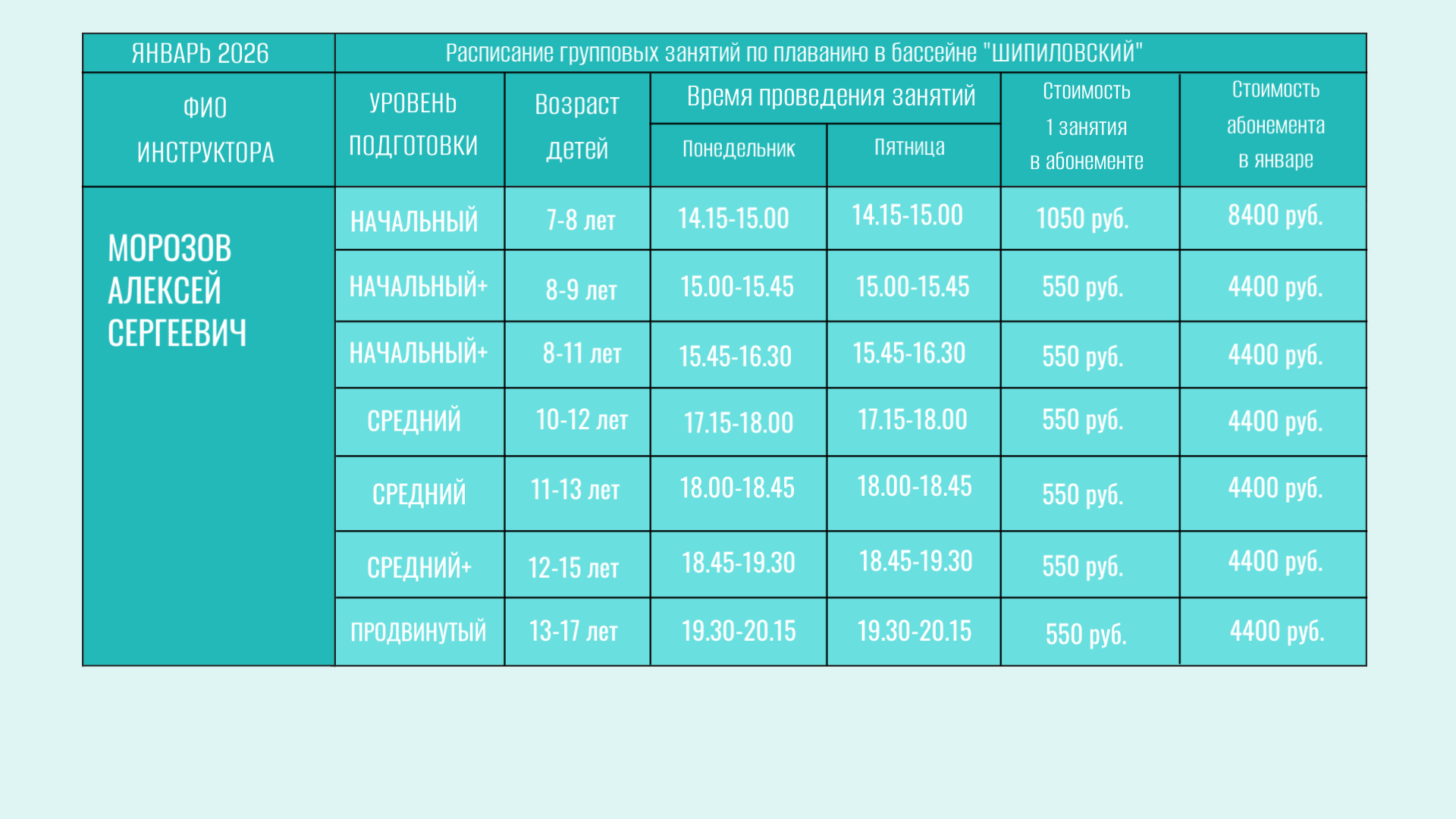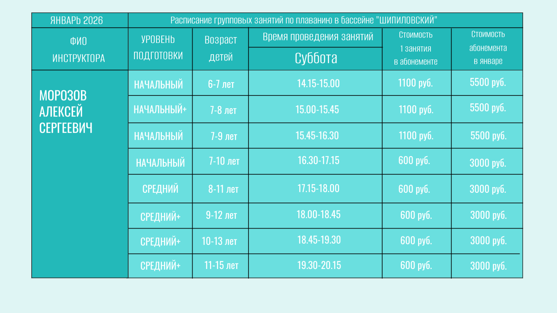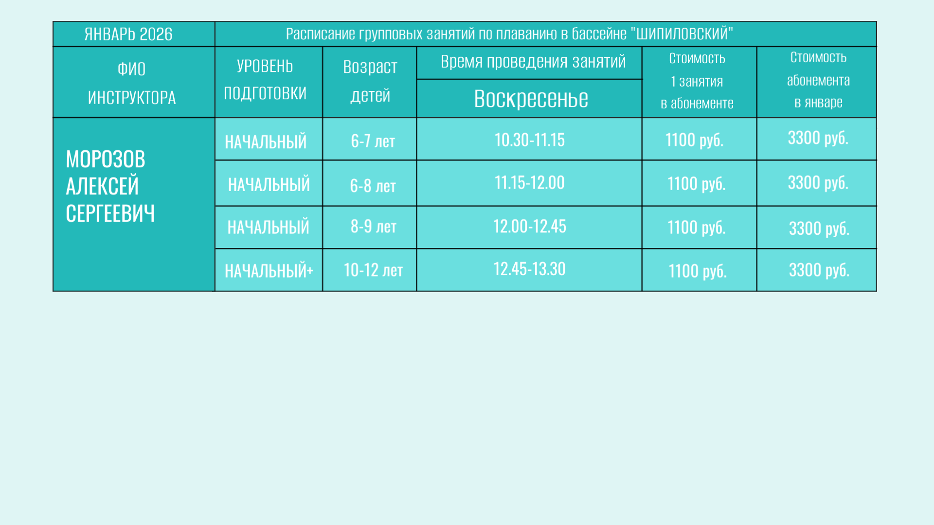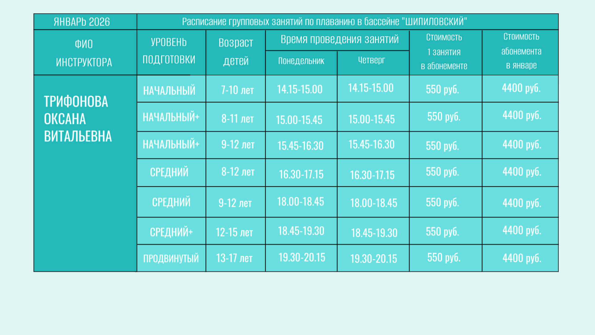В бассейне проводятся групповые занятия для детей от 6 лет.