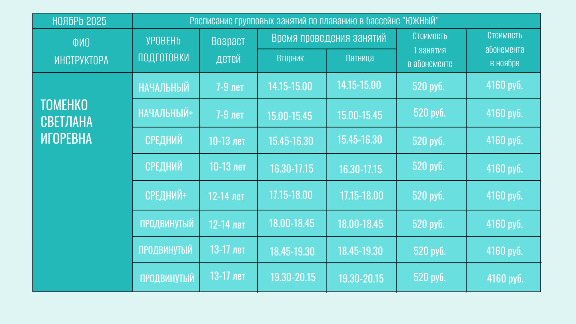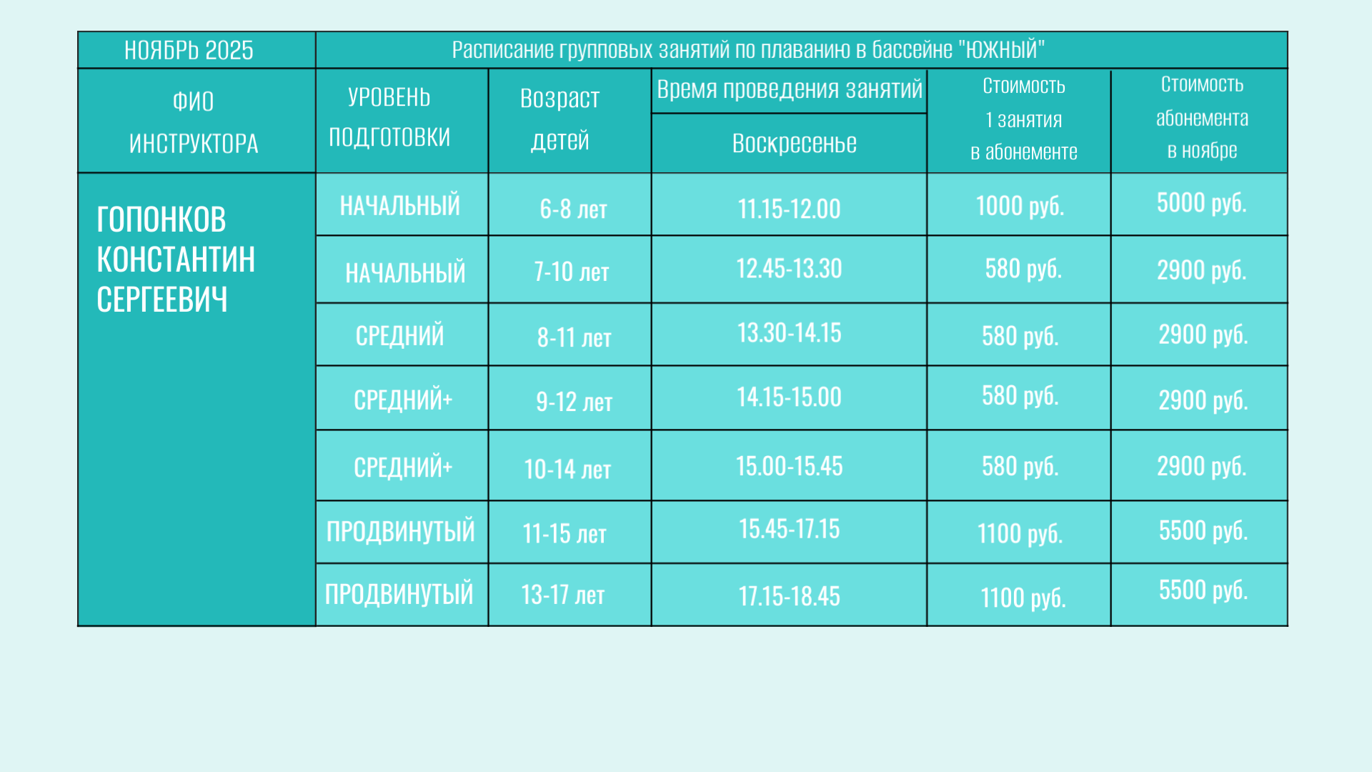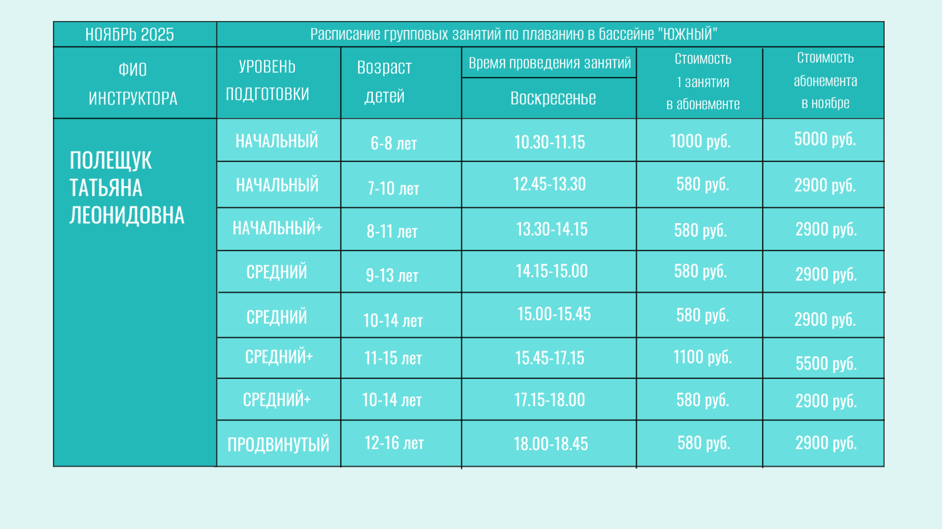 В бассейне проводятся групповые занятия для детей от 6 лет.